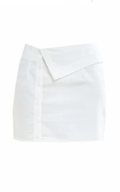 Mini jupe en coton blanc à rabat asymétrique