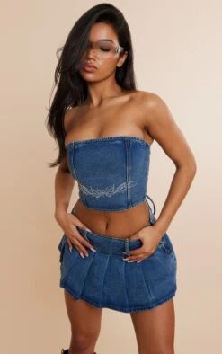Trop belle, surtout fans cette mini jupe. On est sous le charme de l’effet vintage de sa matière en jean et le détail du papillon strassé. Pour un look rétro style années 2000, portez cette jupe avec le top bustier assorti, une paire de bottes et une paire de lunettes de soleil. Vous et la mode, c’est une belle histoire de style !