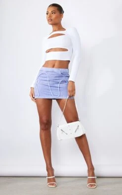 Sublime dans cette mini-jupe ! Avec sa couleur bleu acier, sa maille sergée canon et sa couleur bleu acier délavé, on ne peut que valider. Il suffit de la porter avec un crop top et une paire de talons et le tour est joué. Crush sur vous !