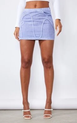 Mini-jupe en maille sergée bleu acier délavé à coutures surjetées