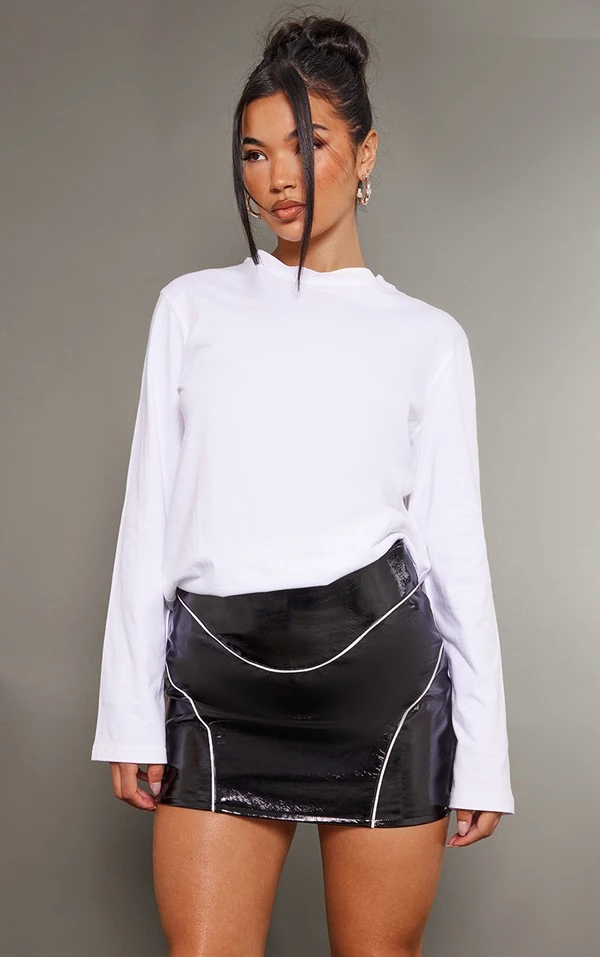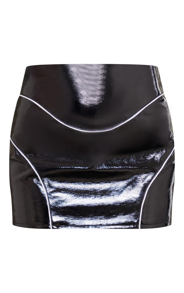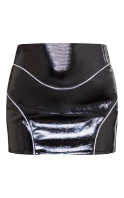Mini-jupe en similicuir noir Ă coutures devant