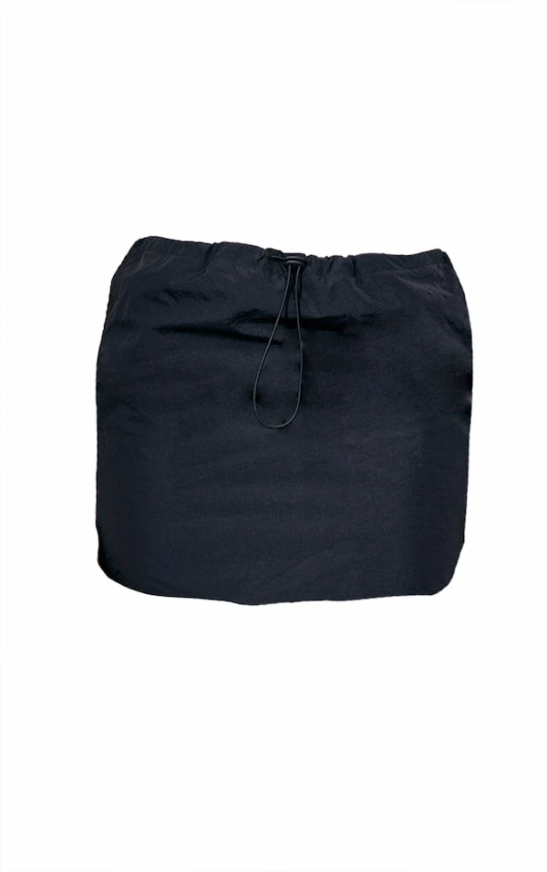 Mini-jupe noire style parachute à cardons ajustables à la taille