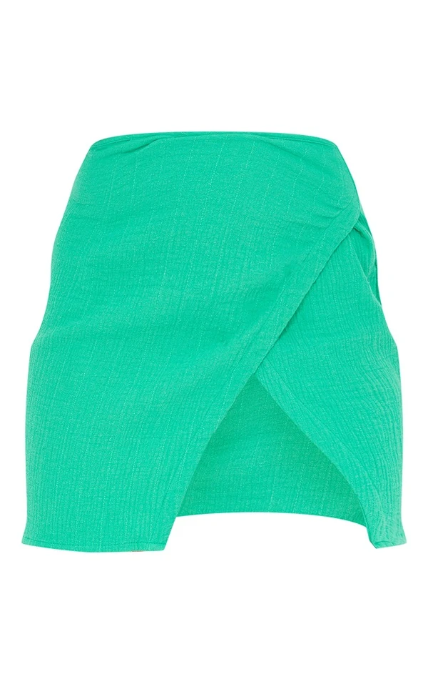 Mini-jupe portefeuille en maille gaufrée vert vif