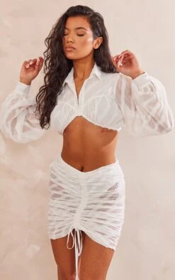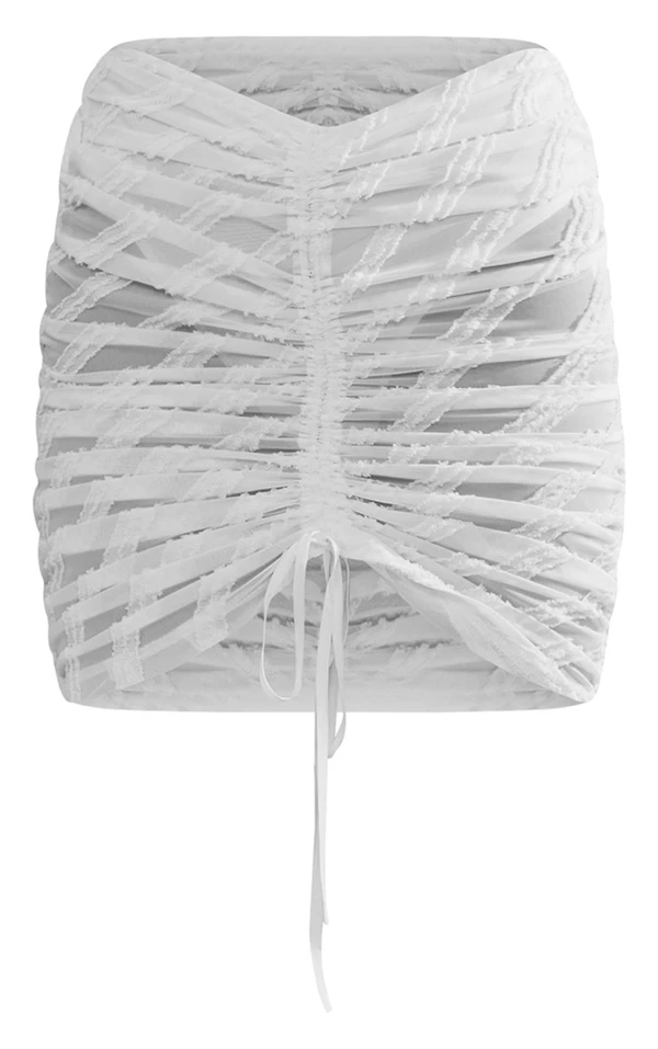 Mini jupe tissée texturée froncée blanche à nouer devant