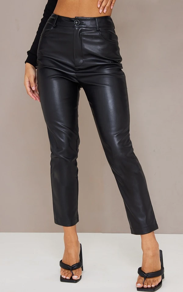 Pantalon ajusté en similicuir noir