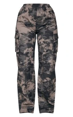 Pantalon cargo large ceinturé anthracite imprimé camouflage à taille haute