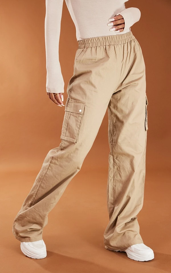 Pantalon cargo large gris pierre Ă taille haute