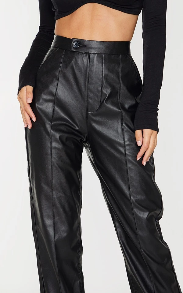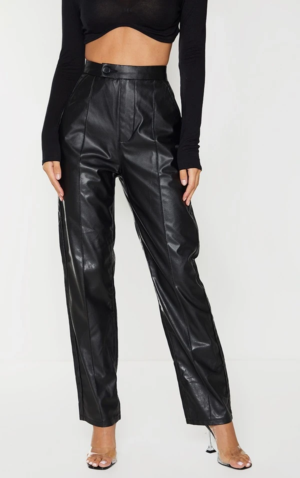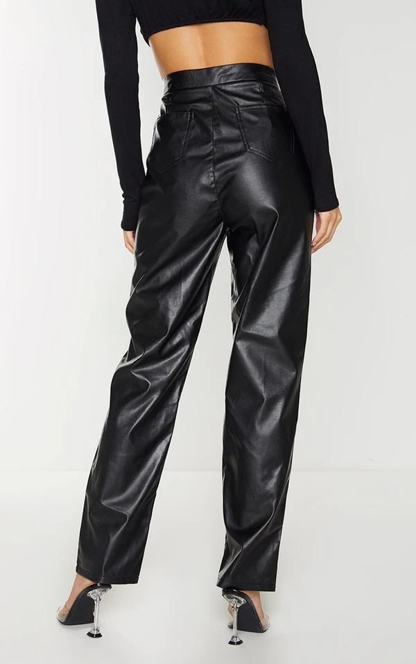 Crush sur le pantalon droit! Avec son similicuir noir, son détail pinces et son design minimal, il nous a fait craquer. Il ne manque qu’une paire de bottines!
