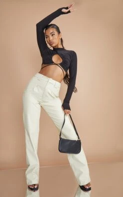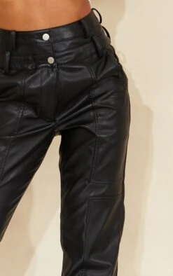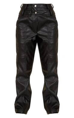 Pantalon Droit En Similicuir Crème à Détail Froncé Et Poches