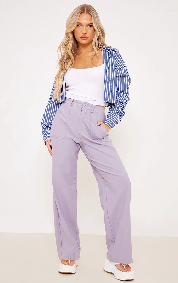 Canonissime ce pantalon droit ! On adore sa matière stretch, sa couleur lilas-gris et sa coupe à taille haute très flatteuse. Il vous suffit de le porter avec un crop top et une paire de baskets pour un look qui fera tourner toutes les têtes. Love it !