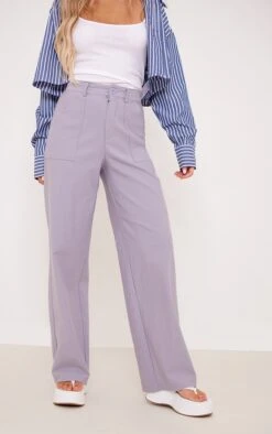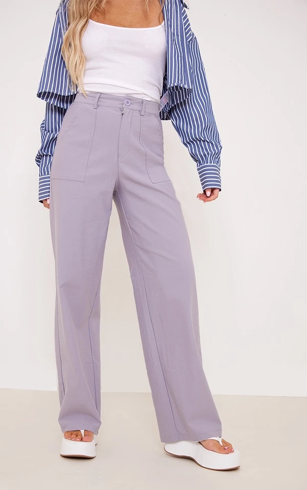 Pantalon droit stretch lilqs-gris taille haute