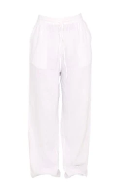 So summer le look de ce pantalon effet lin. On adore son coloris blanc épuré et son design à cordons élastiques hyper pratiques. Il ne manque qu’un chemisier de couleur noire à lanières, des mules et quelques accessoires dorés.