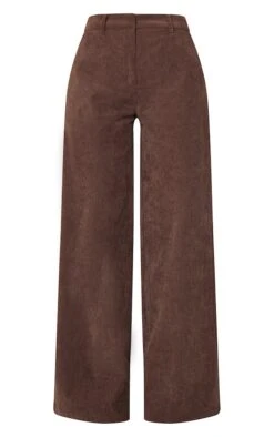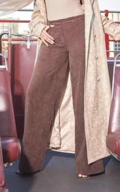 Pantalon large en velours côtelé chocolat à taille mi-haute