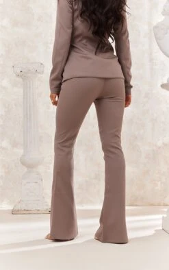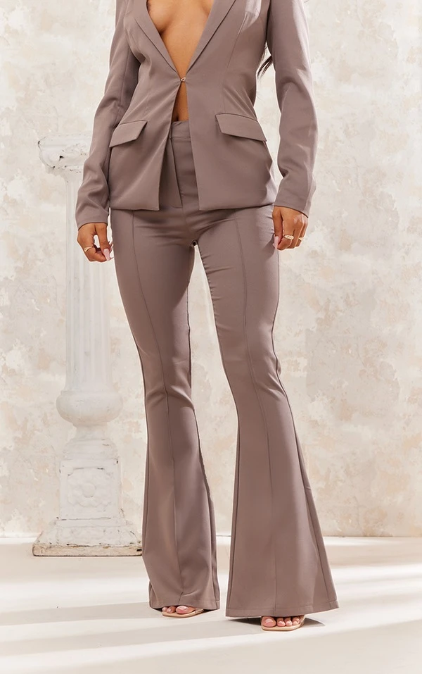Pantalon large taille haute taupe