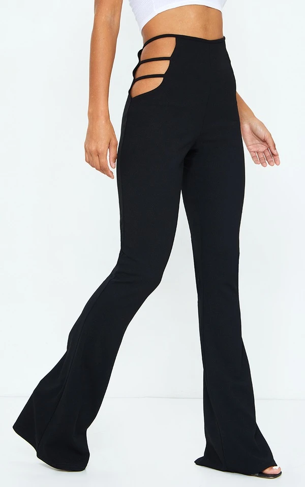 Tellement canon ce pantalon à découpes! Avec son noir indémodable, ses jambes évasées et son détail à lanières osé, il est beaucoup trop cool. Franchirez-vous le pas?