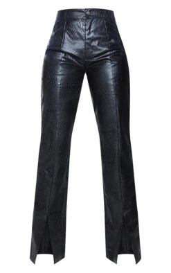 Pantalon skinny en similicuir noir effet croco Ă ourlets fendus