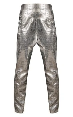 Pantalon taille haute argenté effet serpent