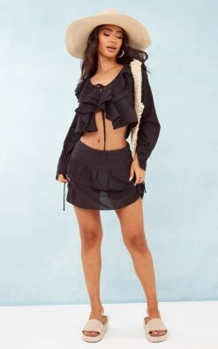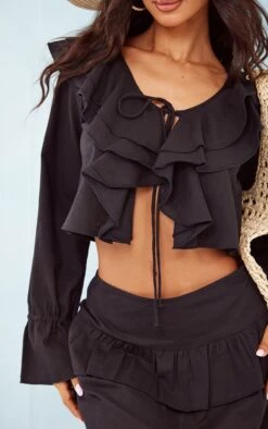 Cette petite blouse est à shopper sans plus attendre, les filles. On adore son effet lin léger, son coloris noir basique et rétro et son design à volants qu’on adore. Plus qu’à enfiler la jupe qui va avec, des talons et un petit sac. Sublime !