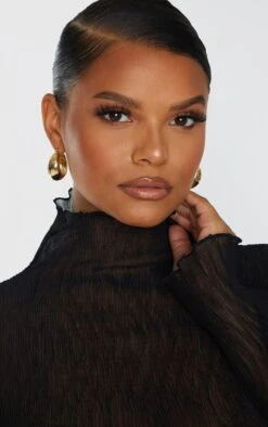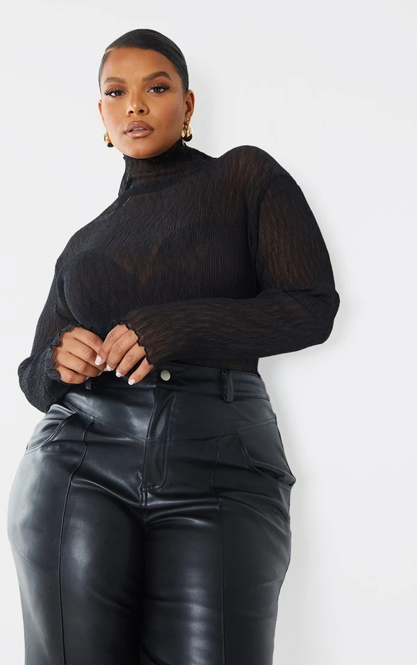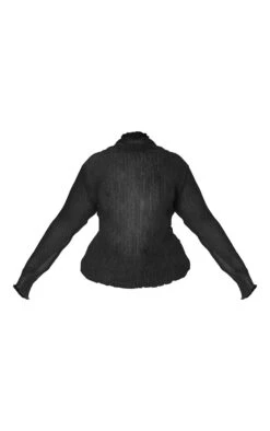 Si belle dans le coloris noir de cette blouse à l’effet plissé texturé. Avec ses fronces et son col montant, il ne manque que le pantalon en similicuir de la même couleur et une paire de sandales. Love it !