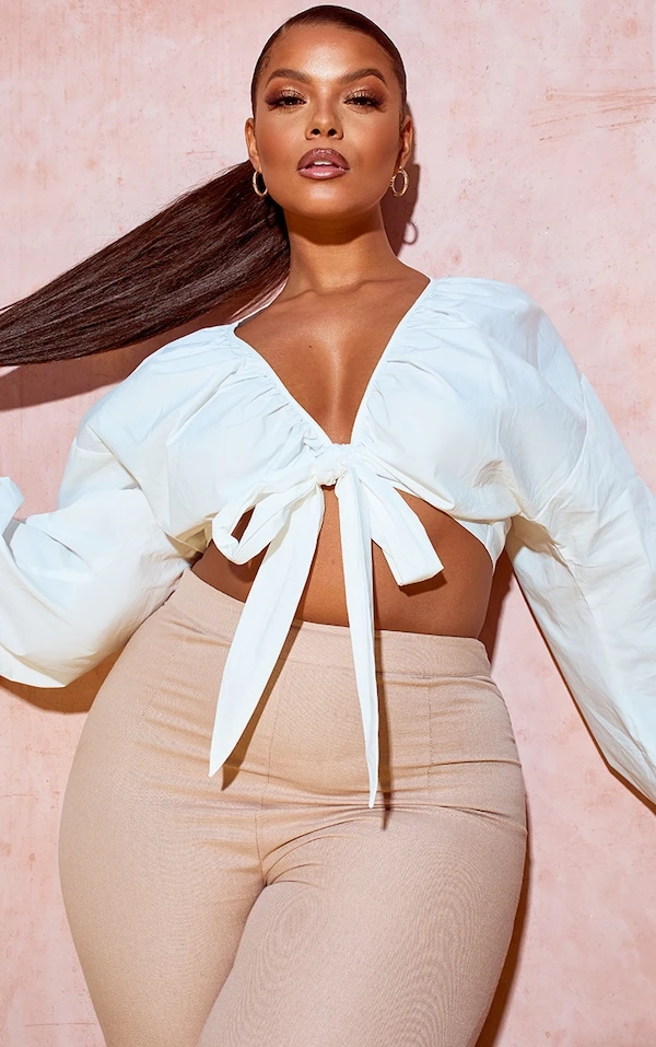 Plus Chemisier blanc froncé à lien noué devant