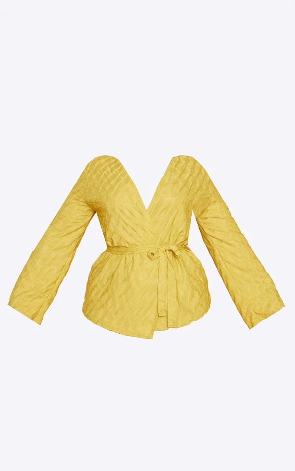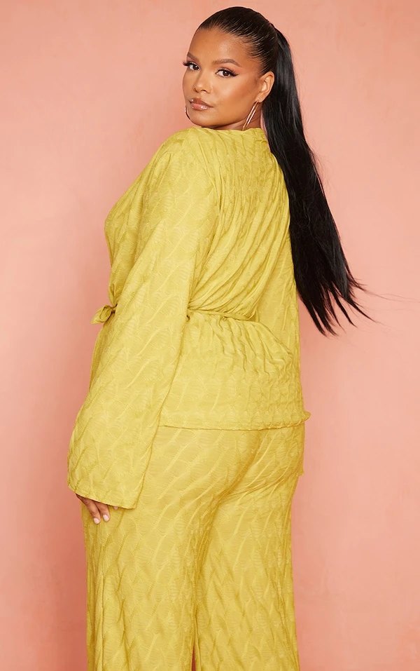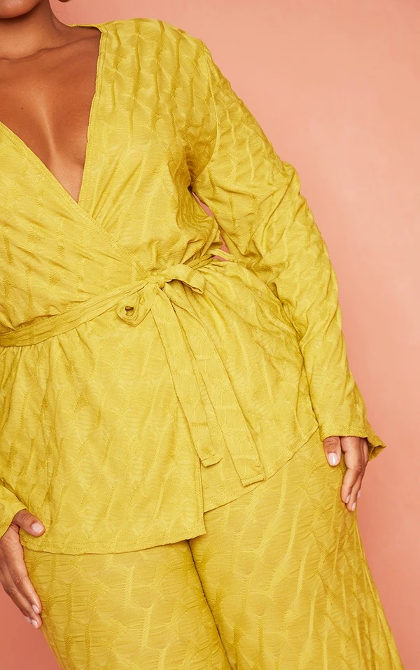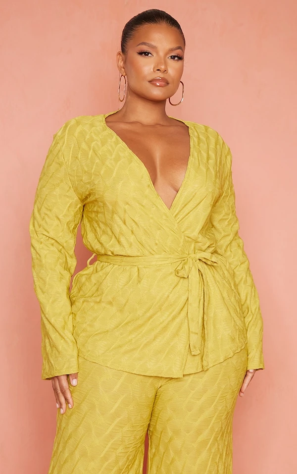 Plus Chemisier cache-coeur texturé chartreuse à devant noué