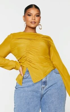 Plus Chemisier chartreuse froncé devant