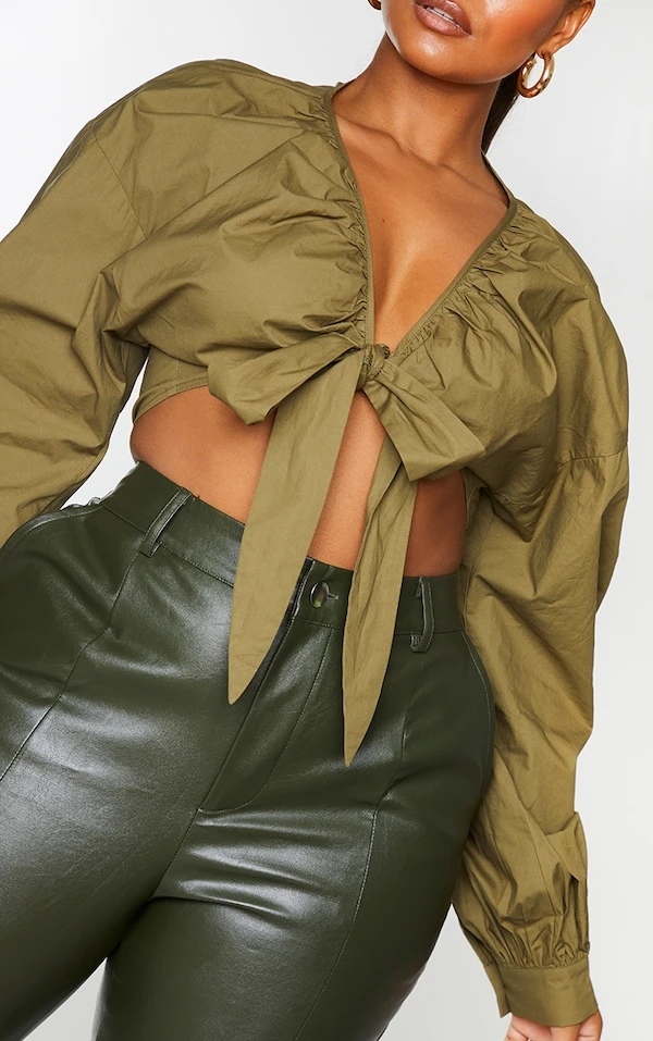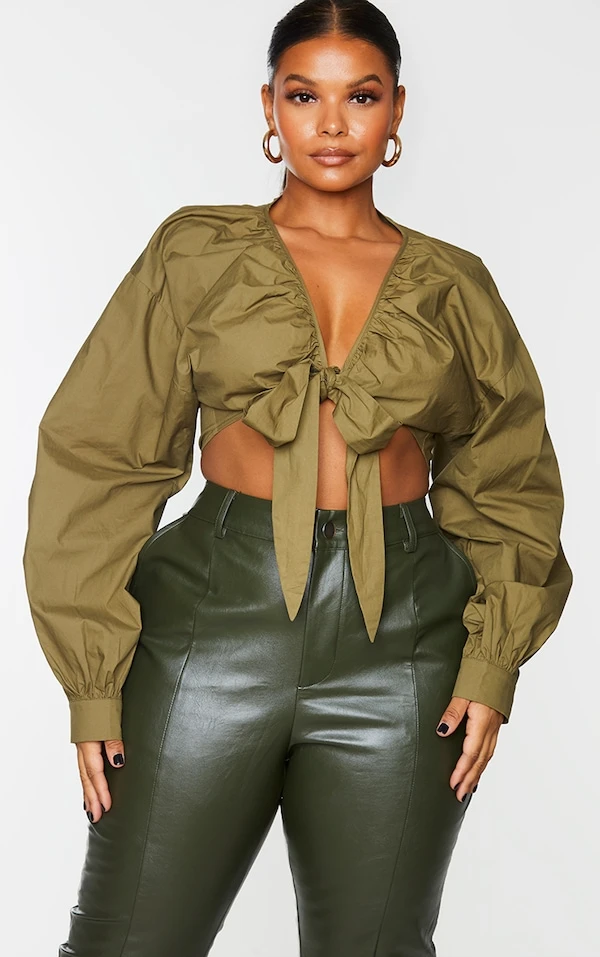 Plus Chemisier kaki froncé à lien noué devant