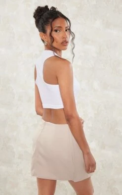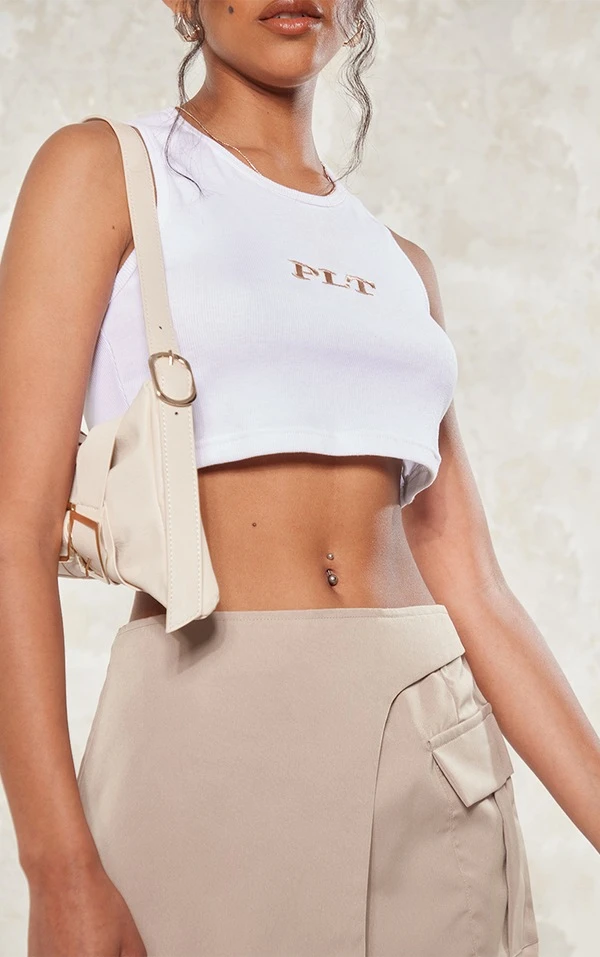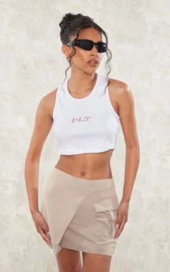 PRETTYLITTLETHING Crop top dos nageur blanc à slogan brodé