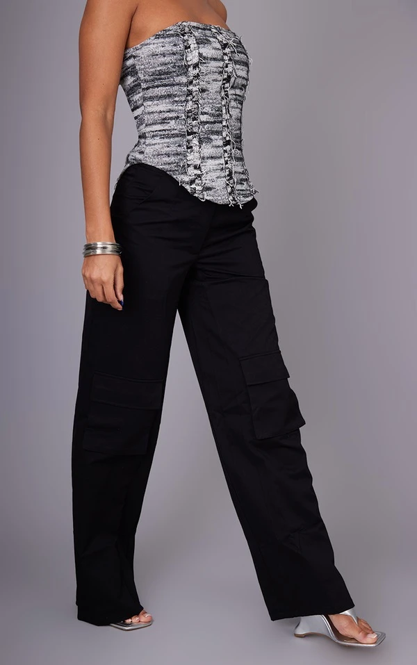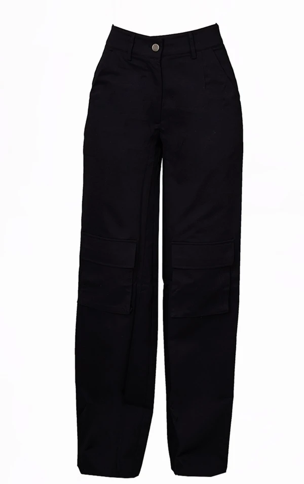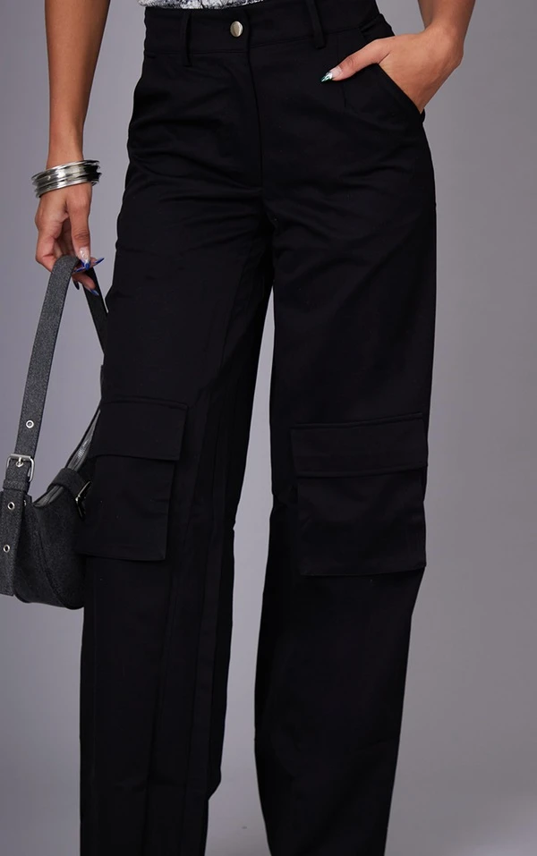 PRETTYLITTLETHING Pantalon cargo noir en maille sergée à poches