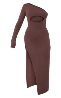 Trop belle dans cette robe longue au design asymétrique qui fait toute la différence. On aime beaucoup sa matière en maille tricot et la gourmandise de sa couleur chocolat. Pour une soirée, on la porte avec une paire de mules et quelques accessoires dorés, ni plus ni moins. Vous allez faire sensation !