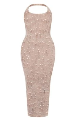 Trop belle dans cette robe de plage de couleur crème. Avec sa matière en maille tricot côtelée élimée et sa coupe longue, on la porte par-dessus un bikini coloré avec un collier dorée à chaînes superposées. Easy, le look summer !