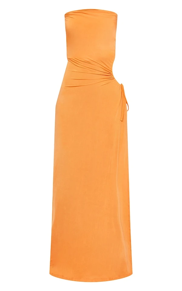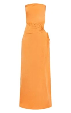 Robe Longue Bustier Moulante Orange Découpée Froncée Sur Le Côté