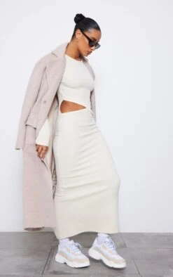 Look glam en toute simplicité dans cette robe longue ! Sa matière côtelée texturée vous va hyper bien et on adore son coloris crème et son design à découpes croisées très original. Plus qu’à enfiler une paire de baskets et une paire de lunettes de soleil. Magnifique !