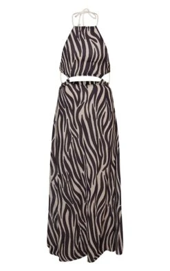 Robe longue de plage gris pierre zébrée à découpes et détail cordes
