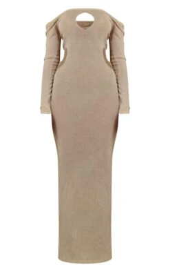 Robe longue en maille transparente crème découpée à manches longues