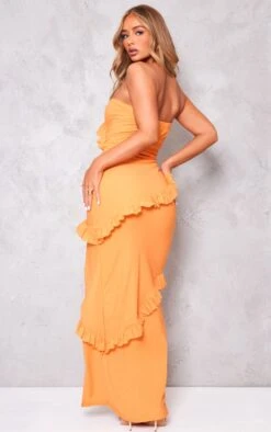 Robe longue en mesh transparent gris pierre Ă bretelles et barre en V plongeante