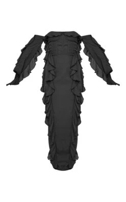 Robe longue en mousseline de soie noire Ă corset et manches longues