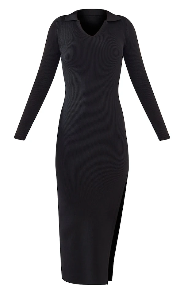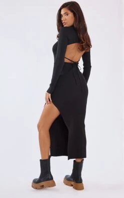 Robe longue noire en maille tricot