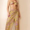 Robe longue orange en mesh drapé volanté à bretelles