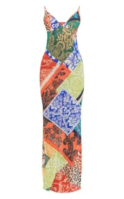Robe longue style patchwork multicolore fleuri Ă dos nu et bretelles