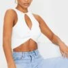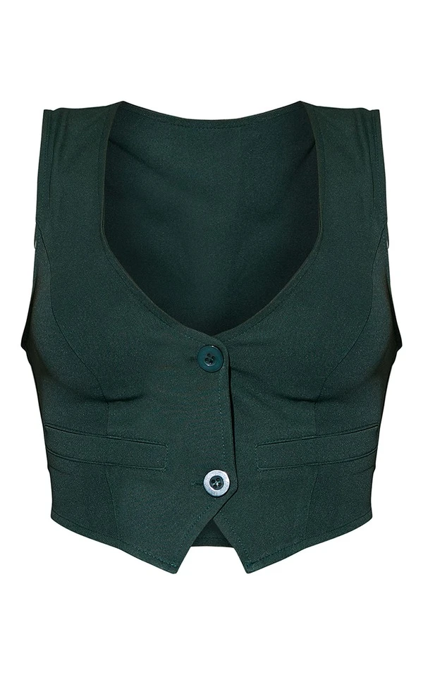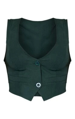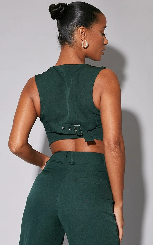 Top style gilet vert foncé en maille tissée à ceinture dans le dos