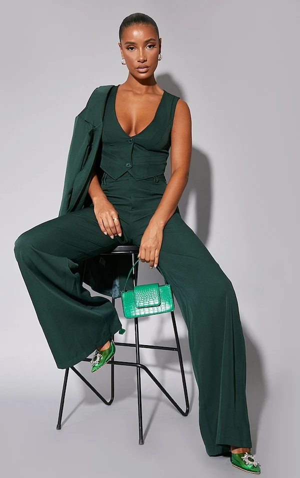 Trop belle dans le coloris vert foncé de ce top au style gilet. On aime sa matière en maille tissée et sa ceinture dans le dos que l’on porte avec le pantalon de la même couleur et une paire de baskets, tout simplement.